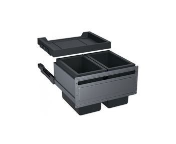 Prügisorter, 2 x 26 l, esiuksega avatav, külgseintele monteeritav, sujuv sulgemine, kaasaas paigaldusšabloon, organiseerimissahtel koos aktiivsöefiltriga