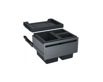 Prügisorter, 26 l + 2x 11 l, esiuksega avatav, külgseintele monteeritav, sujuv sulgemine, kaasas paigaldusšabloon, organiseerimissahtel koos aktiivsöefiltriga.