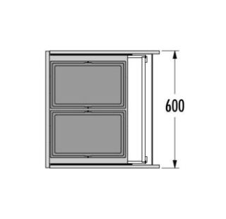 Prügikastidega 2 x 28 liitrit, mille saab paigaldada enamustesse tuntud tootjate sahtlitesse. Sahtli reelingud jäävad varjatuna prügikasti raami alla